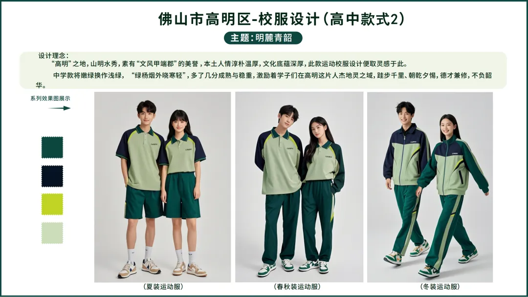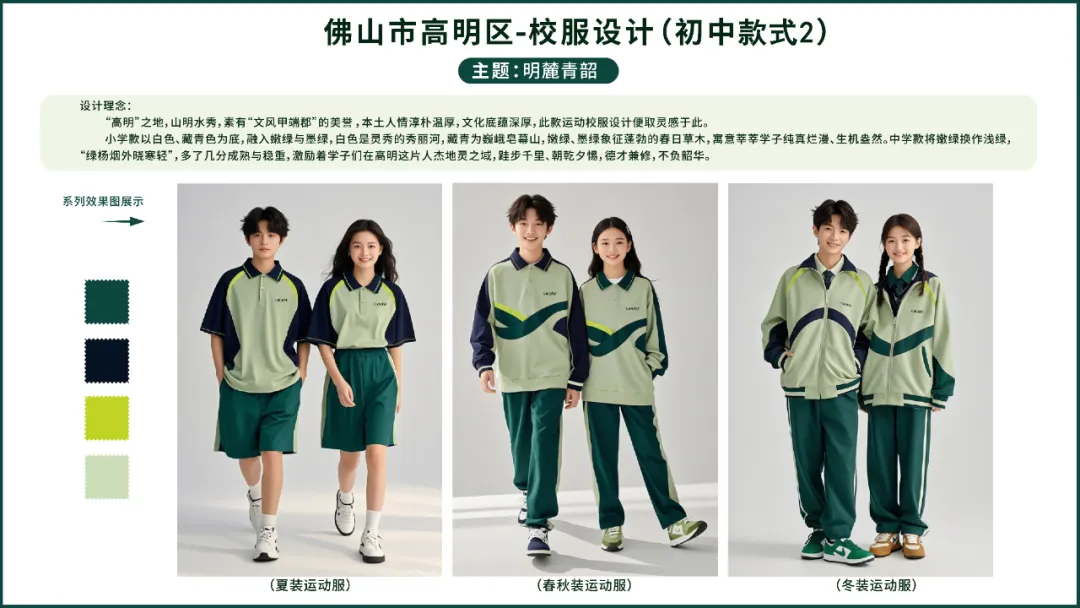 其中,意见明确了校服设计的主题,认为校服应遵循“朴素、大方、美观、实用”的原则,充分考虑学生年龄特点,突出育人功能,贴近佛山市及三水区域文化特色。在款式方面,公办小学、初中和高中(含中职)三阶段将分别拥有其独特的校服款式,每款校服将包括运动服和礼服两大类,并根据性别和季节,分为男、女款,春秋装、夏装和冬装。此外,校服上衣显著位置还需缝制或佩戴学校徽章,区分不同学校。为满足学生的实际需求,在校服的面料上意见也给出明确要求,要使用安全环保、柔软舒适、吸湿透气、弹性适中、耐穿易洗、不起球、不变形、不变色的面料。