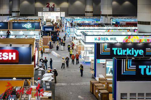 展馆内,随处可见工人忙碌而有序地搭建展位。