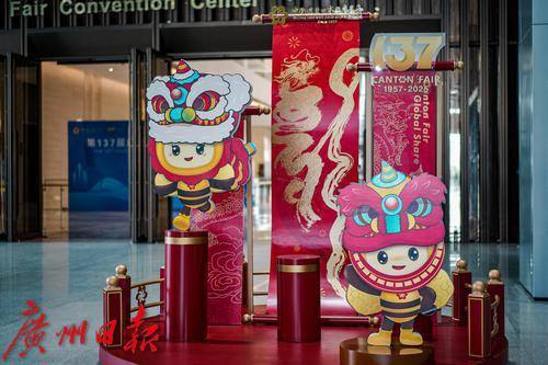 广交会的吉祥物摆件做出舞狮造型,喜迎八方来客。
