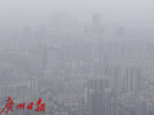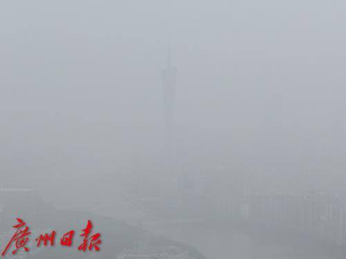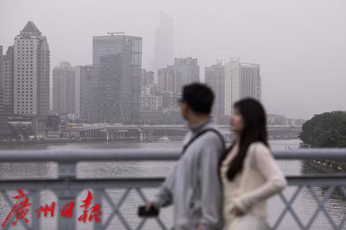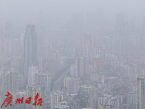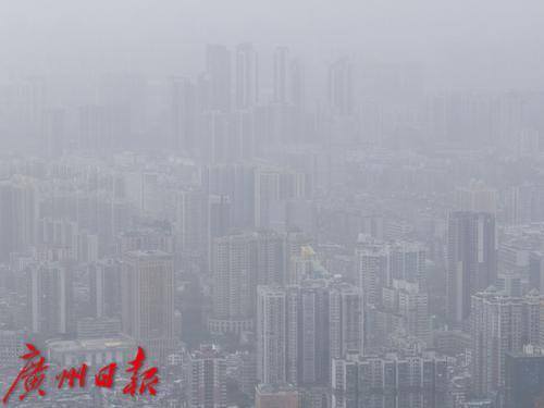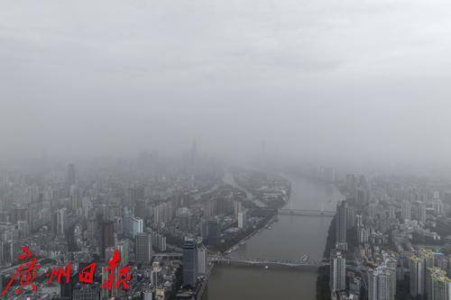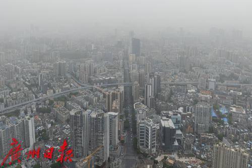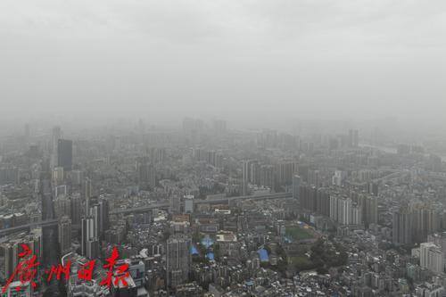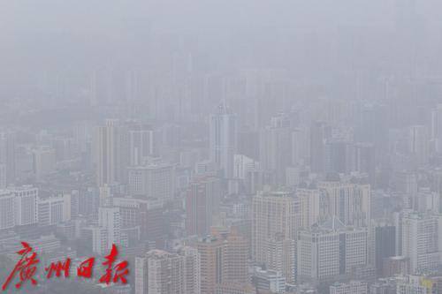 受北方沙尘天气南下引起的浮尘天气影响,广州能见度变差。