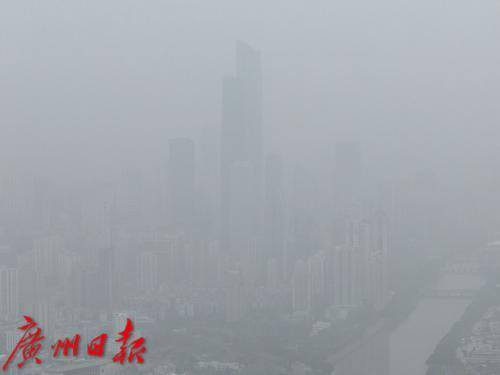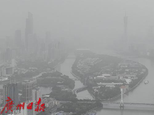 笼罩在沙尘中的珠江新城楼宇变得朦胧不清。