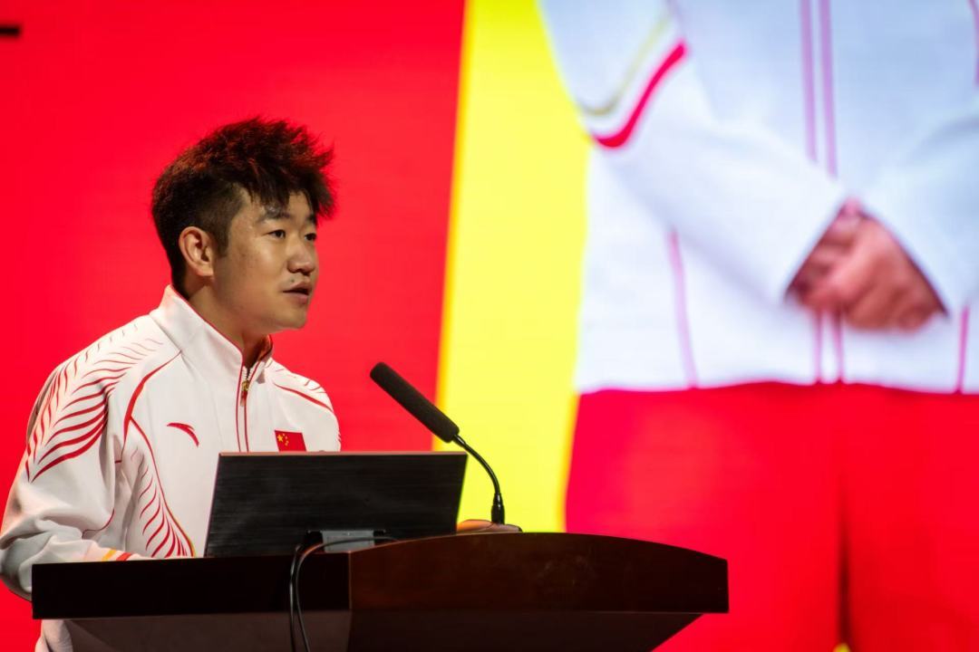 在励志演讲环节,两位运动员以亲身经历诠释了“逆境中绽放光芒”的真谛。彭伟楠在10个月大时因意外导致右半身运动功能受损,但他从未向命运低头。9岁接触乒乓球后,他坚持用左手打球,历经十年磨砺,终于在东京残奥会上斩获团体金牌和单打铜牌,并于2024年巴黎残奥会再获混双银牌。
