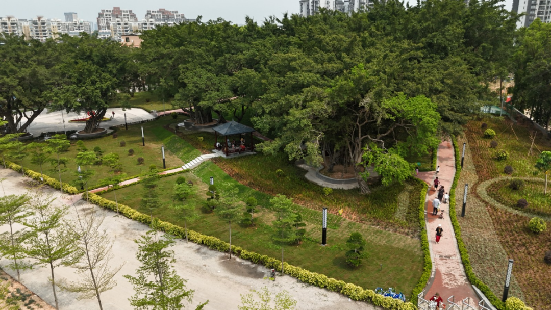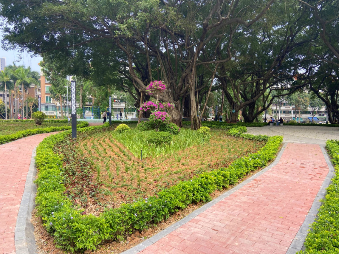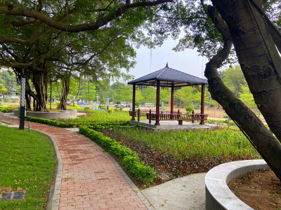 在改造过程中,该村秉持生态优先原则,保留原有榕树林,打造具有特色的公园文化地标“我爱罗家”广场,同时在区委组织部的大力支持下,通过实施“民生微实事”项目,积极引入“双百”共建单位、大龙商会和社会企业等力量,种植了腊肠树、造型榕树、桂花树、罗汉松等苗木近450株,打造高矮搭配、乔灌共融、四季不同的特色生态绿植片区;此外,还配套建设了罗家公园牌坊、2处便民凉亭、休闲绿道、康体设施等。