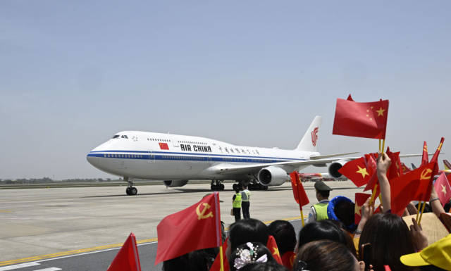 当地时间4月14日中午,中共中央总书记、国家主席习近平乘专机抵达河内,开始对越南进行国事访问。