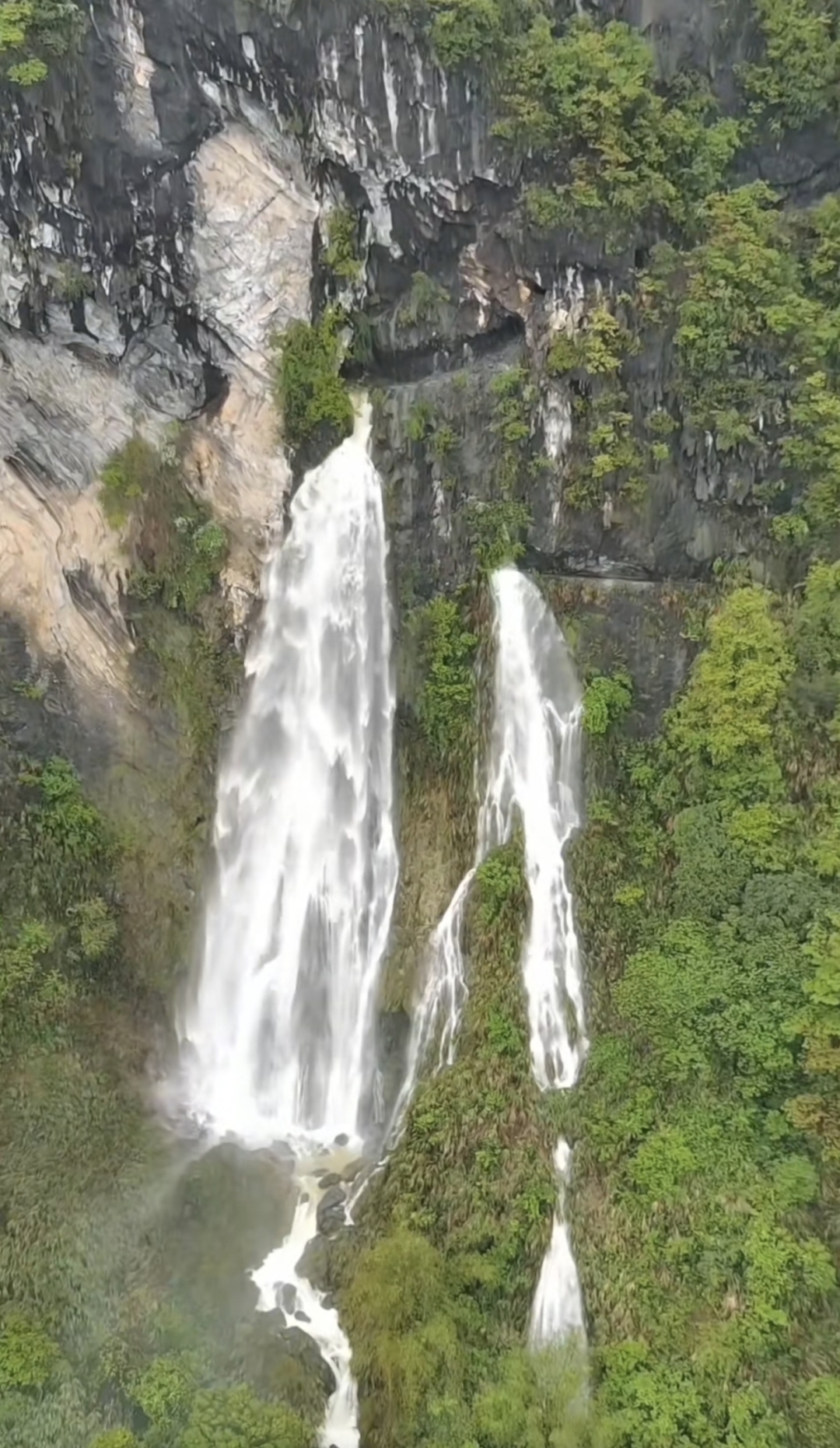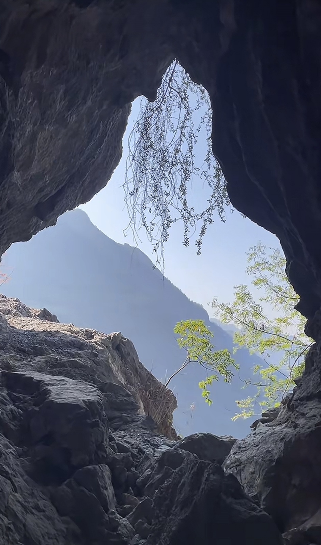 不知走了多久,前方出现了一丝光亮,走出洞口的那一刻,眼前的景象让人震撼:满目青山连绵起伏,洞口下是万丈绝壁,云雾在脚下缭绕,仿佛置身于仙境之中。如果是春夏雨季,暴雨突然来袭,溪流瞬间汇成山洪,从洞口倾泻而下,形成了一幅气势磅礴的瀑布景观。那飞流直下的水花,在阳光的折射下,闪烁着七彩的光芒,让人不禁感叹大自然的鬼斧神工。