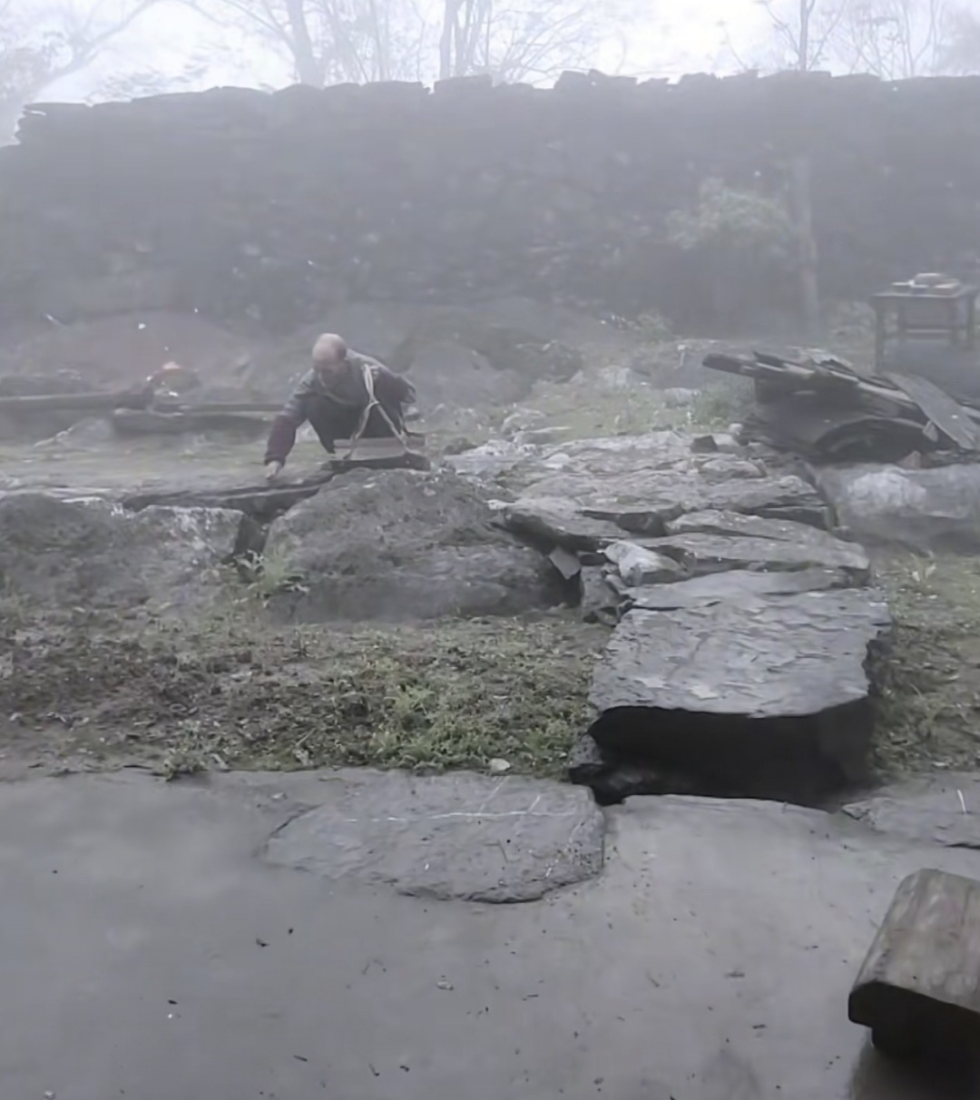 靠近悬崖的地方,几段长长的片石墙默默伫立,田边的野花在春风中摇曳。听村里老人讲,这些石墙体现的是先辈的关怀与智慧,一方面是为了抵御山间时常肆虐的大风,给村子增添一道防风屏障;另一方面,也是为了守护孩子们的安全,防止年幼的孩童不慎掉下悬崖。