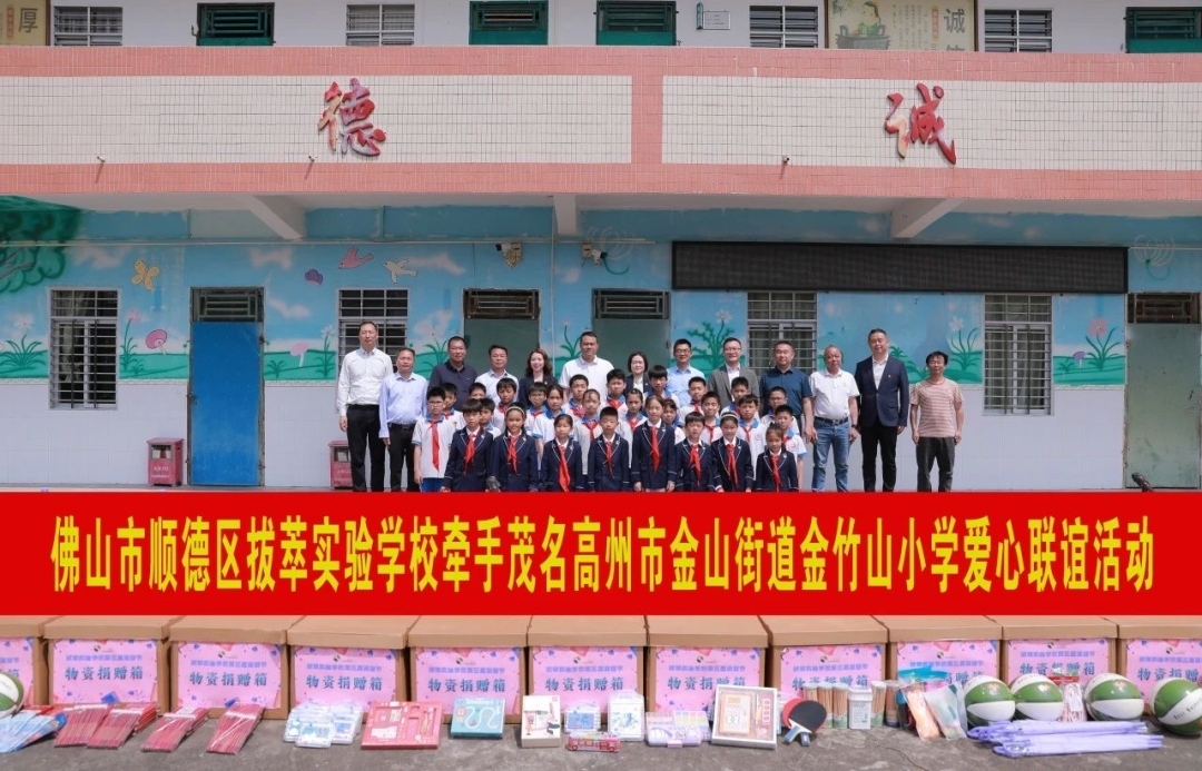 今日,广州日报记者获悉,佛山市顺德区拔萃实验学校党支部书记、校长张娟红,带领拔萃实验学校党员、少先队员代表20余人,以“教育无界,大爱同行”为宗旨,在佛山市—茂名市对口帮扶协作指挥部的支持与协助下,精心组织开展了与茂名高州市金竹山小学的爱心联谊主题党日活动。