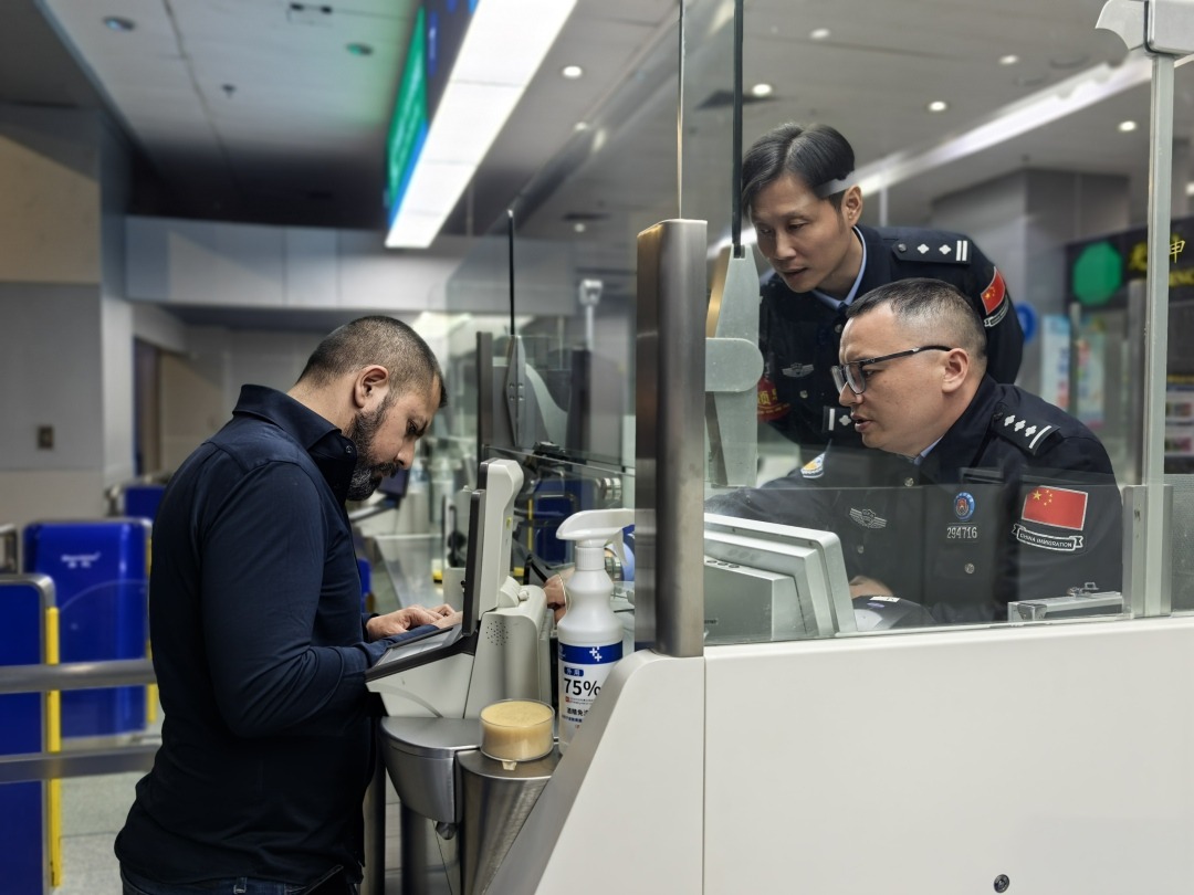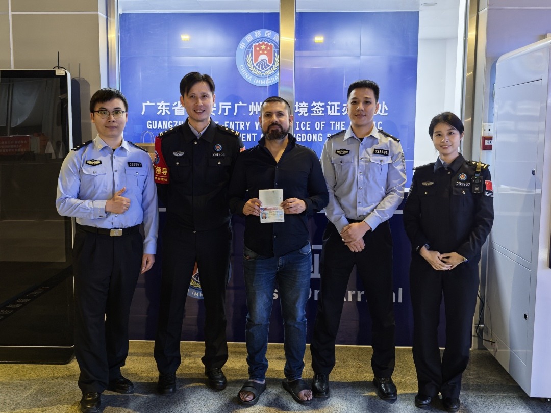4月13日下午,南沙边检站执勤四队提前获知一名外籍旅客拟申请240小时过境免签许可。因该国不属于过境免签办理范围,该执勤队在了解到该旅客持有广交会邀请函件后,迅速联络南沙客运港广州公安出入境签证办事处,获知可以办理口岸签证,随后为该名旅客提供引导、翻译等服务,与签证办事处加强工作协调,协助该旅客顺利获得口岸签证,为该旅客解了燃眉之急,助其按时入境参加广交会。