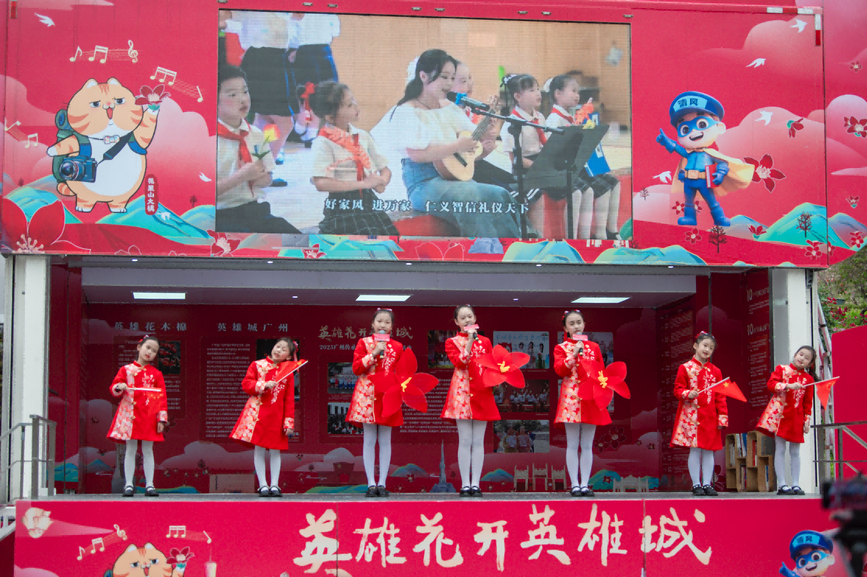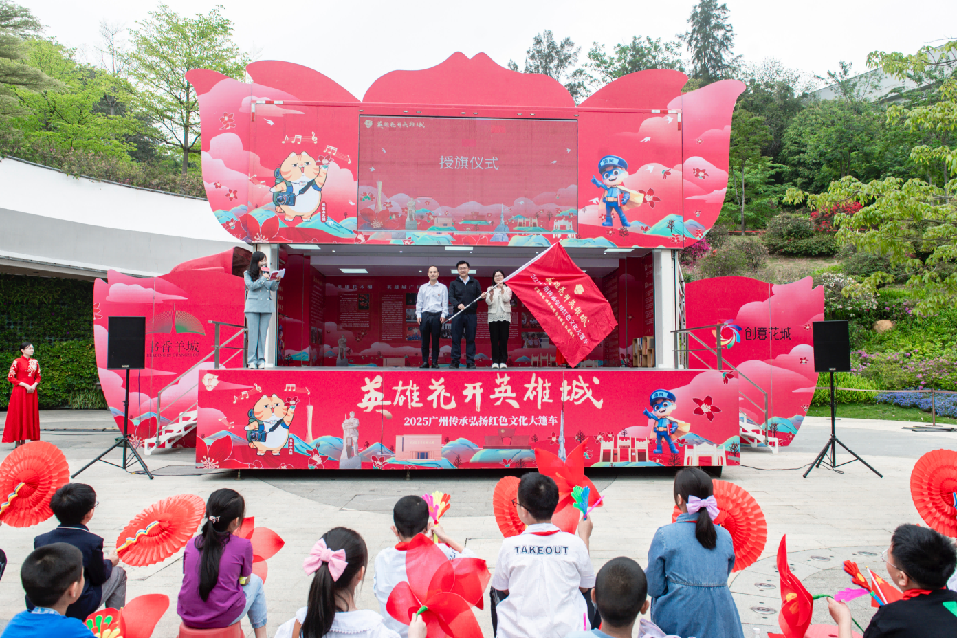 “英雄花开英雄城”2025广州传承弘扬红色文化大篷车旗帜传递交接至白云区。
