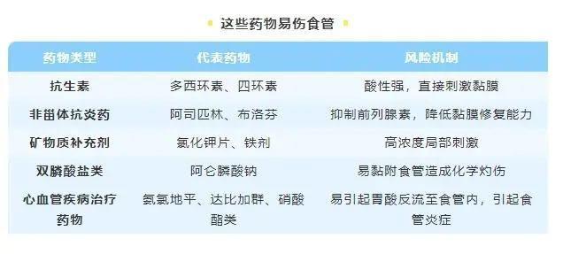 多种药物同时吞服:药片堆积在食管,延长接触时间。