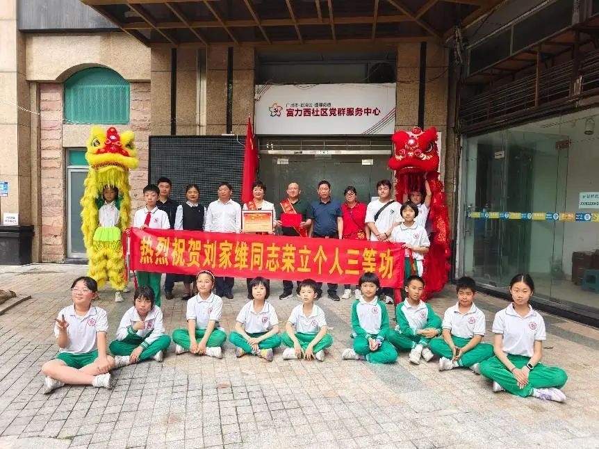 为弘扬拥军优属优良传统,营造“一人立功、全家光荣”的社会氛围。4月11日下午,来自荔湾区退役军人事务局、逢源街道党工委、逢源街退役军人事务站、荔湾区乐贤坊小学龙津学校、富力西社区和隆城社区退役军人服务站的相关人员组成报喜团,为荣立三等功的现役军人刘家维家庭送上立功喜报和慰问金,对刘家维在部队取得的优异成绩表示祝贺。
