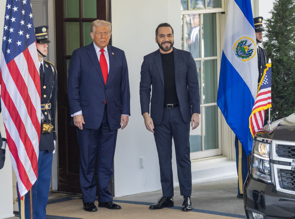 2025年4月14日,美国总统特朗普在白宫会见到访的萨尔瓦多总统布克尔。新华社记者胡友松摄