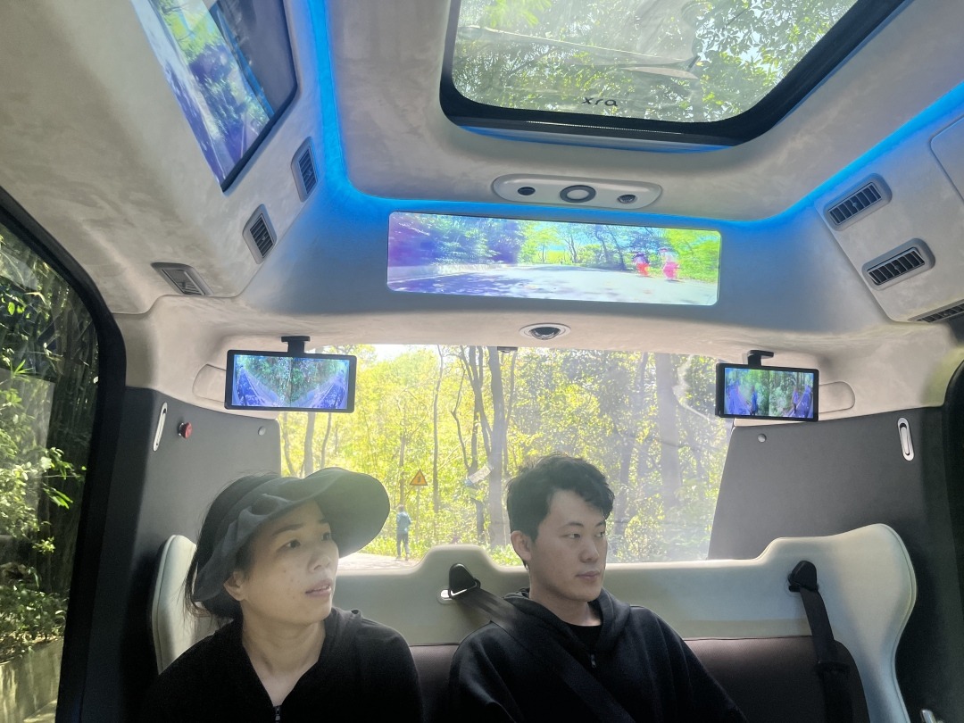 首次开通的无人驾驶巴士行驶路线是翠竹园门岗-桃花涧。车辆行驶过程中游客不能下车。行驶时间大约半小时。记者首次体验后的试乘感觉有三个关键词。