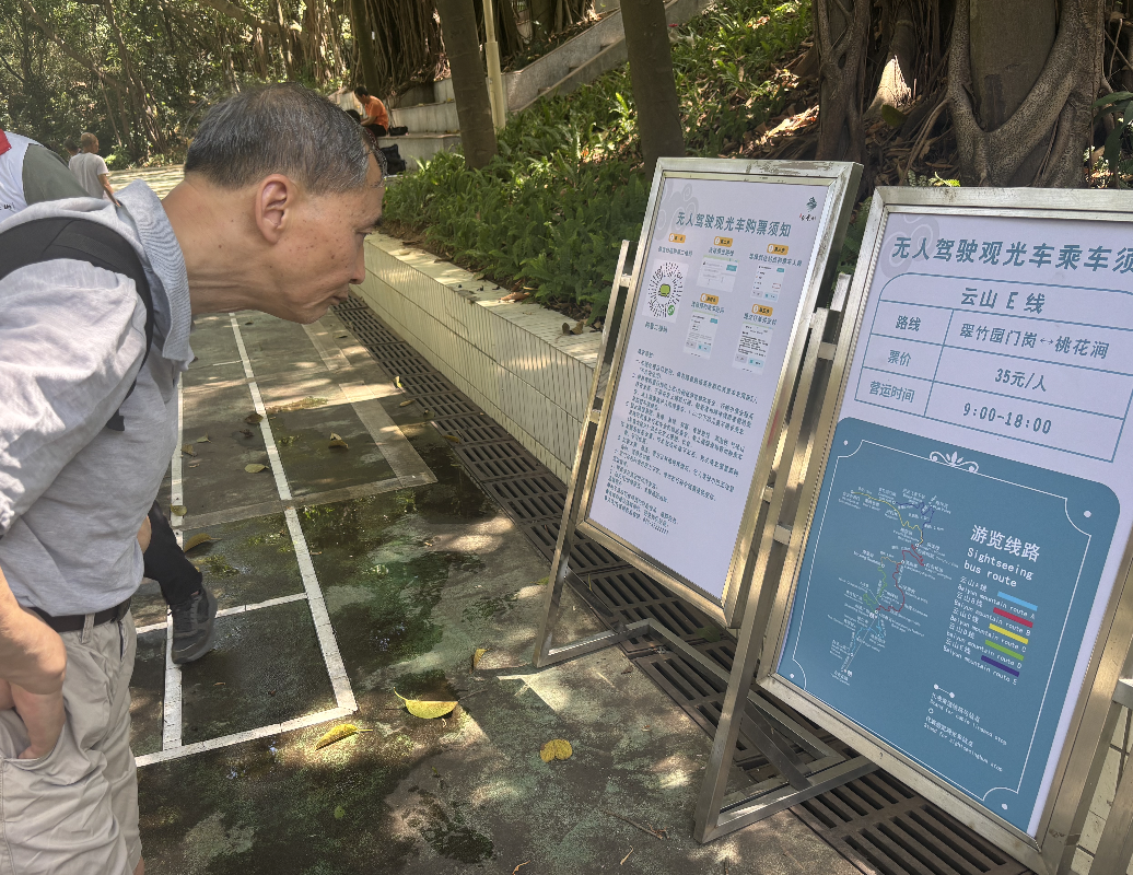 据悉,目前一辆无人驾驶智能观光车投入运营,观光车线路为云山E线,即“翠竹园门岗——明珠楼”,全程约2.2公里,沿途串联起黄婆洞水库、梅花谷、明珠楼等著名景点,单程约半小时,票价35元。更多新路线、新打卡点可以期待后续运营调整。车行绿意间,人在画中游。沉浸式的游览体验,全新的智慧游园模式,不仅适合亲子家庭、情侣出游,更帮助银发游客“无痛登山”。