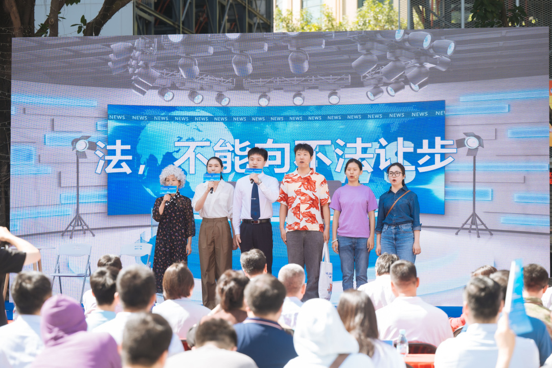 在情景剧与文艺演出环节,荔湾区司法局推荐的情景剧《法,不能向不法让步》,通过有关案例生动演绎法律底线不容触碰;荔湾区文化馆带来的歌曲《向往》、海龙街道党工委带来的舞蹈《桃花笑》以及荔湾区检察院推荐的诗朗诵《检察映山河 铁肩护国疆》,刚柔并济传递守护国家安全的信念。现场还播放了全民国家安全教育日宣传短视频和保密公益宣传片,以真实案例和生动画面揭示泄密风险。