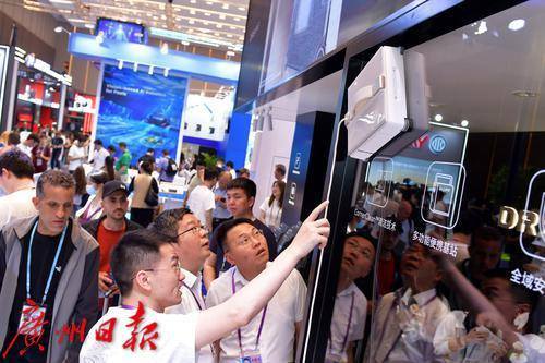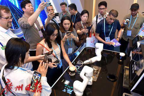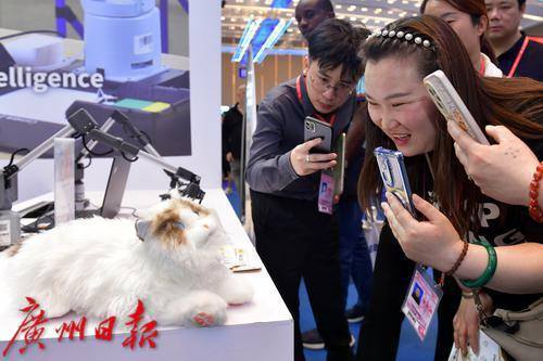境外采购商观看展示的机器猫。