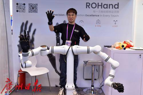 参展商演示为具身机器人和工业用途打造的先进灵巧手。