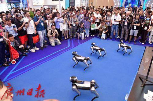 云深处科技的展位前,机器狗的演示吸引了众多采购商的目光。