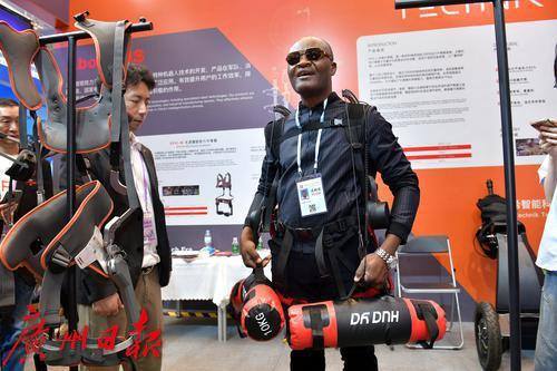 境外采购商体验负载外骨骼。