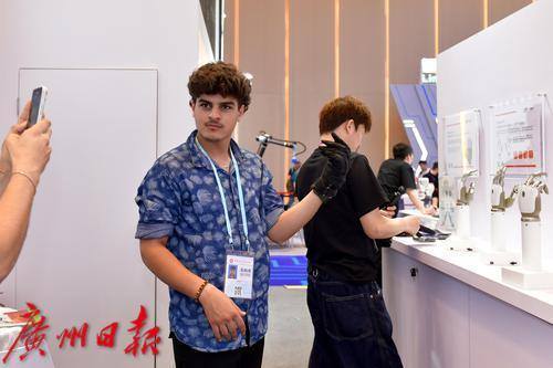 境外采购商体验智能仿生手。