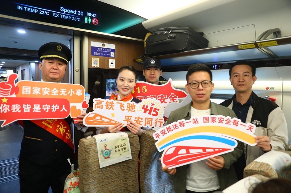 今年4月15日是第10个全民国家安全教育日,由广铁集团广九客运段担当的G6600次列车化身“国家安全教育移动课堂”,自新塘站开车后,“国家安全进车厢”主题宣传活动拉开帷幕。