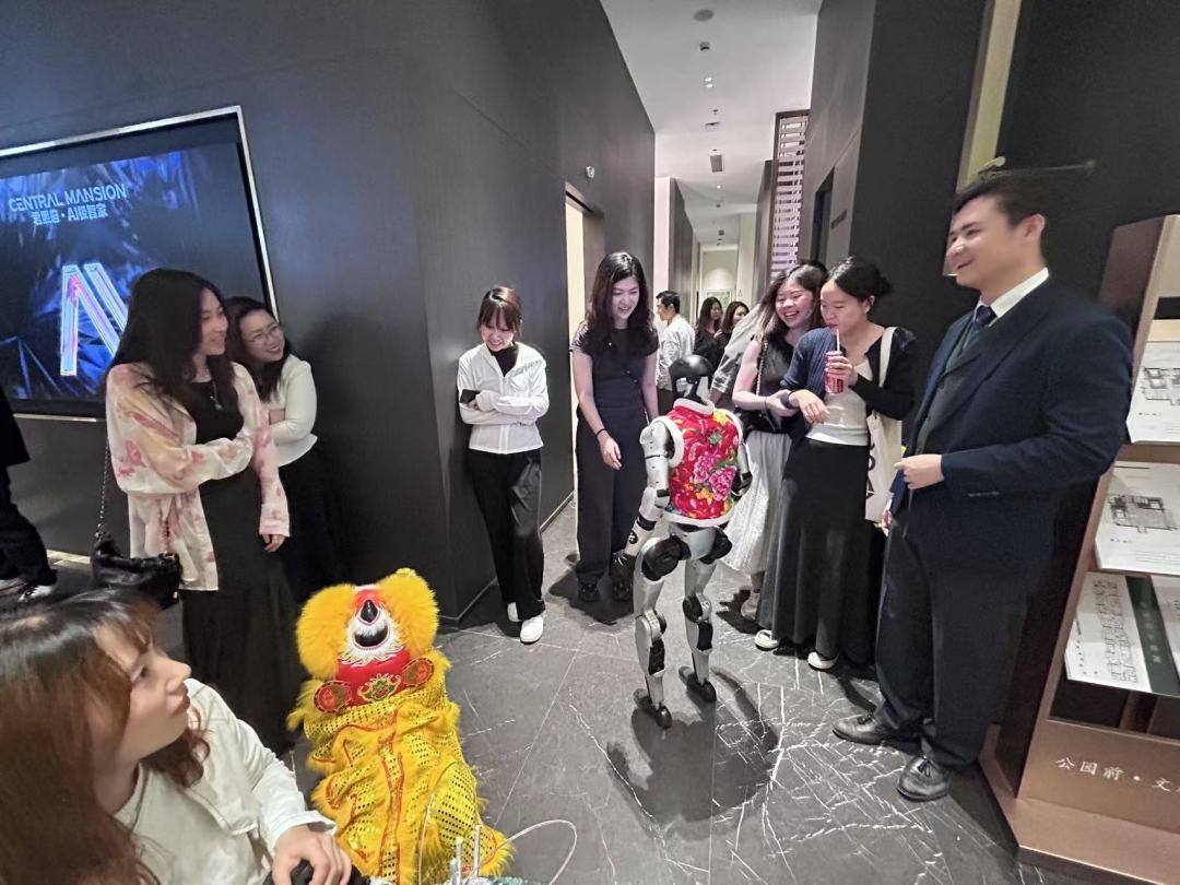 机器狗迎宾,机器人讲解项目,广州楼市营销的科技含量越来越高。日前,越秀区公园前·君熙府项目全新AI生活家智能升级样板房首开,现场的科技感和对改善居住的新阐释吸引了众多客户到访。