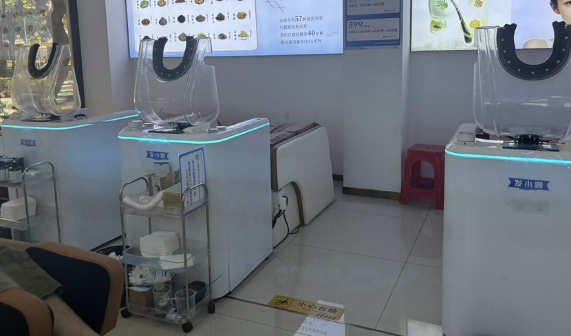 这名工作人员此前在传统养发馆工作。“AI洗头看着很轻松,但在传统养发馆我们只需要服务一位顾客,在这里要‘服务’全场,要帮客人开启AI洗头,还要帮忙吹头发,跑来跑去,有时能走上上万步。”该工作人员表示。