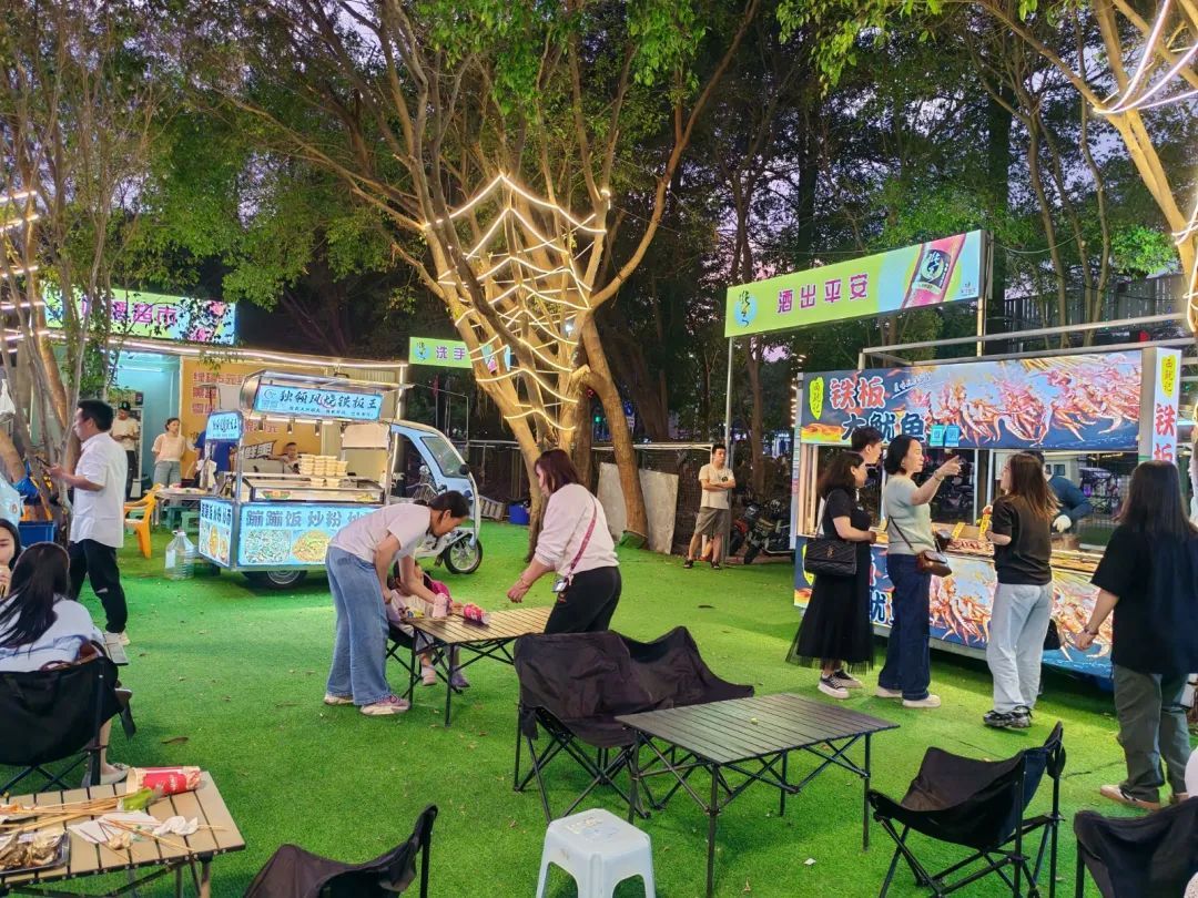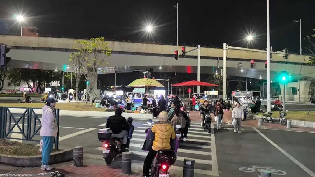 “现在有了固定摊位,比以前好多了!”一位烧烤摊主笑着说道。夜市创新推行“自治管委会”模式,由沙头村指导、摊主轮值管理,并安装了11个监控,实时监测人流、噪音和卫生状况。开业首日,夜市便吸引1500多人次打卡,进一步带动周边商铺营业额的增长。一名街坊说道:“我就住在附近的沙头村,下班后能有一个这样的地方休闲一下,真的太方便了。”