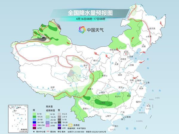 昨天,东北地区等地雨雪明显减弱。监测显示,青海南部、西藏东部等地部分地区出现小到中雪或雨夹雪,局地大雪;新疆伊犁河谷、吉林东部等地部分地区出现小到中雨或雨夹雪。