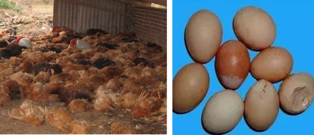 该病毒在室温环境下可存活几天甚至几个月。鸡、鸭、鹅厂一旦暴发新城疫疫情,会造成大规模禽类死亡,产蛋量也会骤降,并出现大量软壳蛋、畸形蛋。