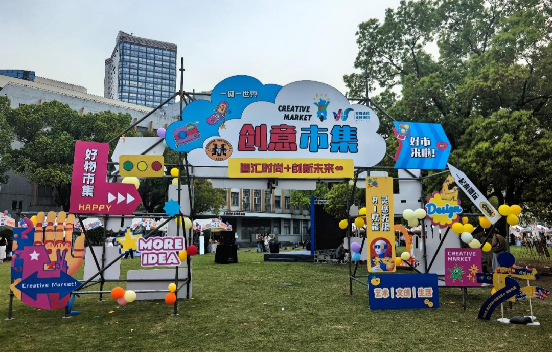 作为本届环东华时尚周的“创意担当”,市集首次全面引入AI技术,开创“智·汇”板块,从摊位布局到视觉标识,从互动设计到作品展示,AI算法与设计师的巧妙结合,让创意市集焕发出前所未有的科技感与艺术感。