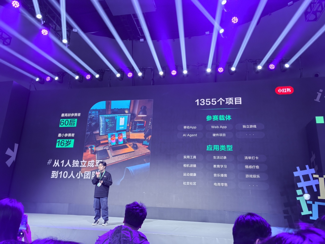 据悉,小红书首届“独立开发大赛”设置宝藏APP和最佳AI项目两个赛道,共有 1355 个项目报名,包含APP、网站、硬件等多个参赛载体,应用类型涉及实用工具、生活记录、清单打卡、相机滤镜、游戏娱乐、运动健康等。值得注意的是,参赛者中不乏00后、05后开发者,其中最佳AI项目的一等奖得主就是一名01年的开发者。