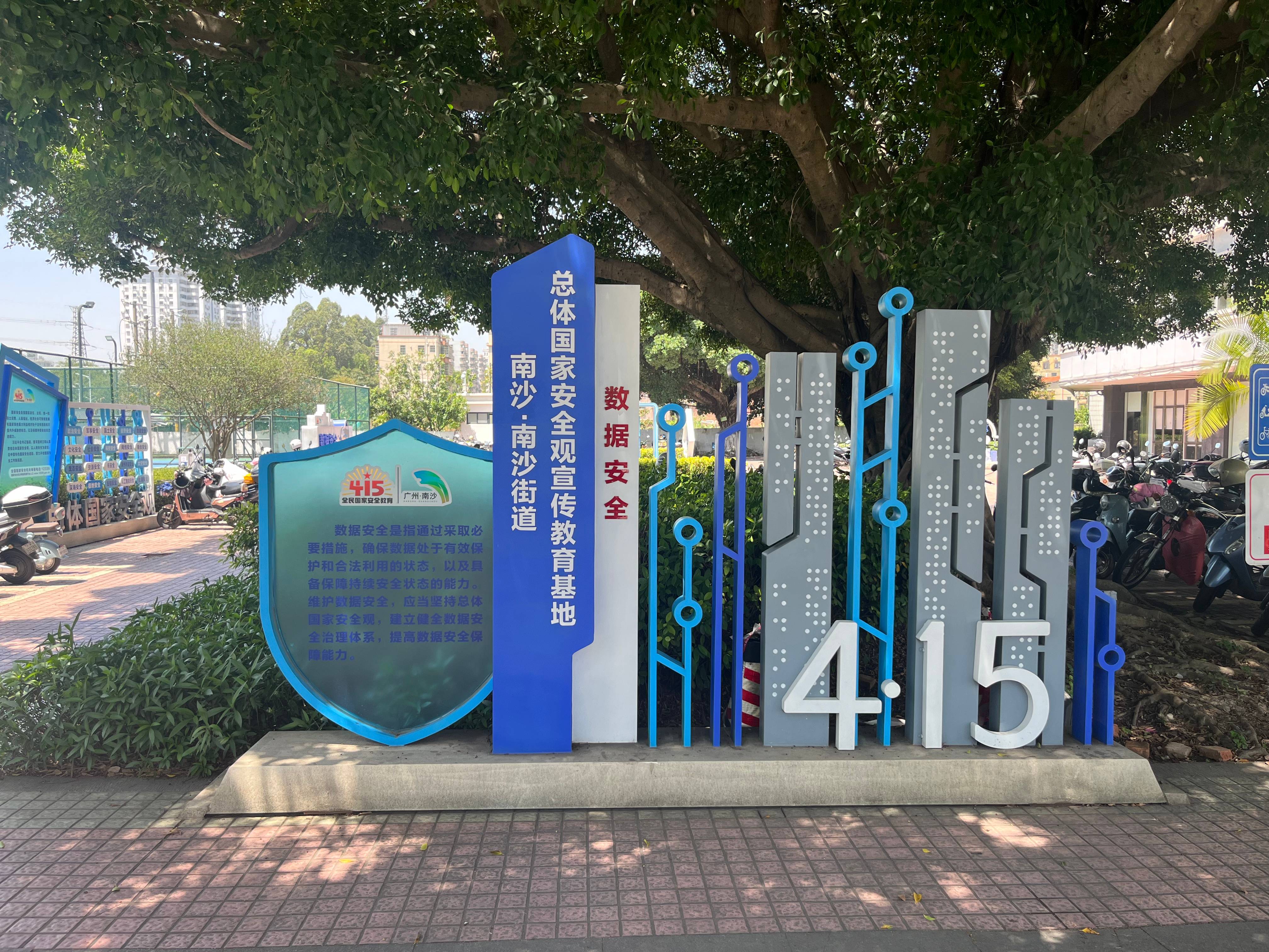 位于南沙街道办事处主楼南侧的南沙街道总体国家安全观宣传教育基地,以口袋公园的形式打造宣传阵地,与旁边便民篮球场、网球场等群众休闲锻炼场所相匹配,设置有总体国家安全观立体景观造型,全面阐释总体国家安全观主要内容。
