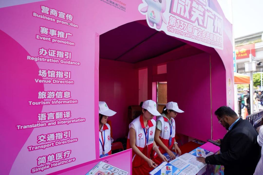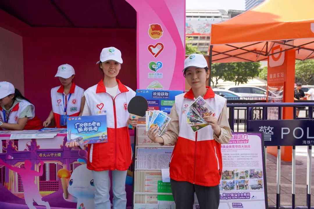 “颠球5次就能赢明信片,试试看?”在“志愿全运·微笑广州”主题志愿服务站前,广交会志愿服务队骨干赖欣手持乒乓球拍,热情邀请客商参与互动游戏。驿站外墙上,十五运会和残特奥会吉祥物“喜洋洋”“乐融融”与广交会标识交相辉映。赖欣介绍,驿站创新融合体育元素,推出乒乓球接力挑战、街舞快闪等活动,“既服务客商,也为年底的全运会预热”。