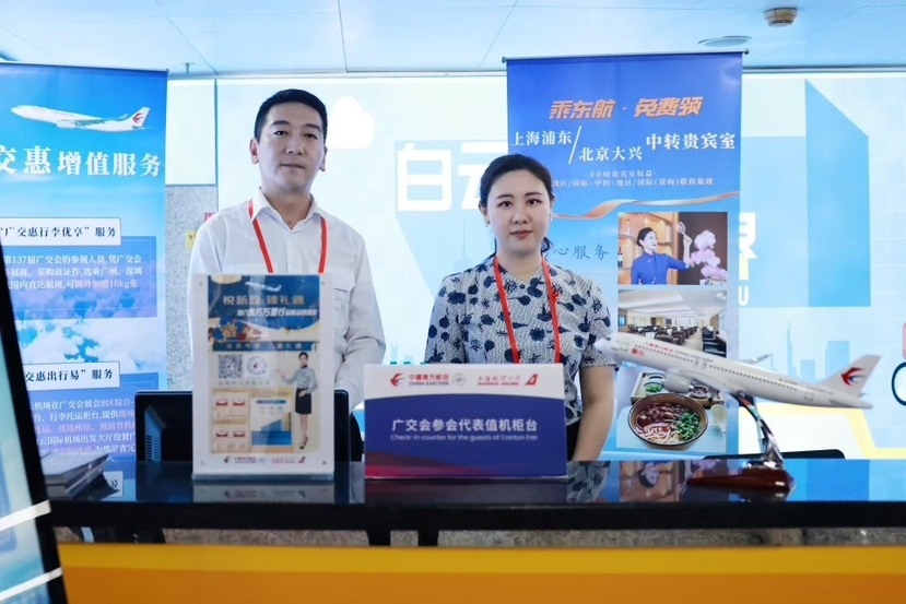 “广交惠出行易”服务面向广交会参展人员——广交会期间,东航协同白云机场,在广交会展馆B区综合-2柜台设置了值机柜台、行李托运柜台,为参展商提供现场值机、优选座位、预留登机牌服务。同时,东航在广州白云国际机场T1航站楼出发大厅E17、E18柜台及深圳宝安国际机场T3航站楼出发厅F16柜台都设置了广交会专属值机柜台,为参展人员节省排队时间。