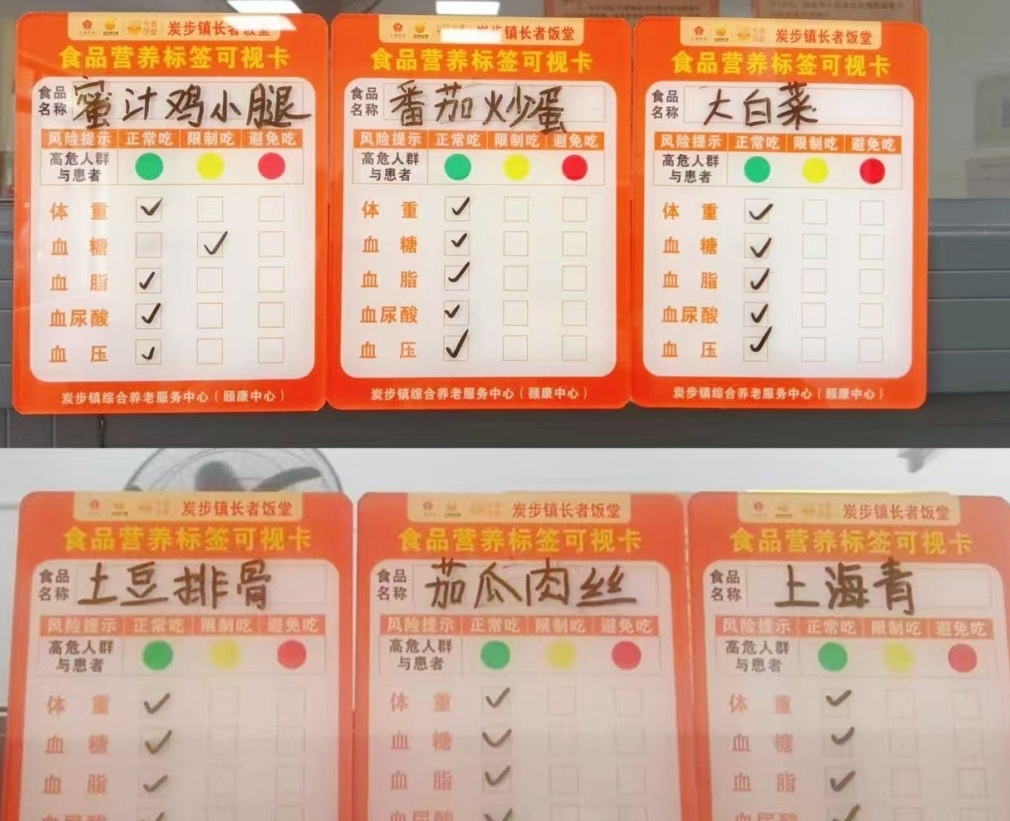 “红绿灯计划”是炭步镇颐康中心针对长者营养需求与健康管理推出的特色服务,运用“红、黄、绿”三种颜色进行食品分类,以科学的方式对膳食进行标识,将食品标签分为绿灯、黄灯、红灯三个等级。高风险人群应依据体重、血糖、血脂、尿酸和血压等指标,选择适宜的餐食。每餐均由专业营养师指导,融入本地时令食材,让长者在享受美味的同时,实现“吃出健康”的目标。