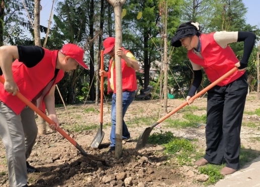 上午9时,活动主会场马溪村大塱顶街沿河片热浪翻涌。在技术人员的指导下,来自广州市农业农村局、广州地铁集团等单位的志愿者与村民组成植树方阵。挥锹铲土、扶苗培土、提桶浇灌,一株株宫粉紫荆在汗水浇灌中迎风挺立。这些宫粉紫荆,由广州市邮政储蓄银行慷慨捐赠,它们将扎根秀全、绽放芳华,成为生态修复补偿林的“新成员”,见证政企携手、共筑绿梦的生动实践。