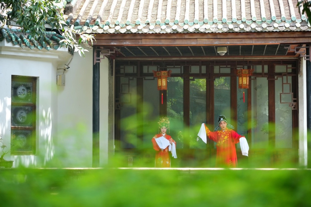 除了“十雅”NPC的亮相外,活动期间精彩的定点秀也将在兰圃小竹林、同馨厅、芳华园上演,每天各有4场次的演出。在芳华园,刘莹老师用扬琴演绎广东音乐经典之作《平湖秋月》《雨打芭蕉》,以轻、柔、华、润的独特气韵,传递广东音乐的诗意美学。同馨厅的粤剧表演由广州粤剧院的金字招牌组合倾情献艺,梁羽飞与潘璟钊表演粤剧折子戏,共赏一对璧人的爱情传奇。岭南曲艺传习所演员刘淑贤带来粤曲弹唱表演《香茶礼赞》《醉春光》,婉转低徊、沁人心脾。