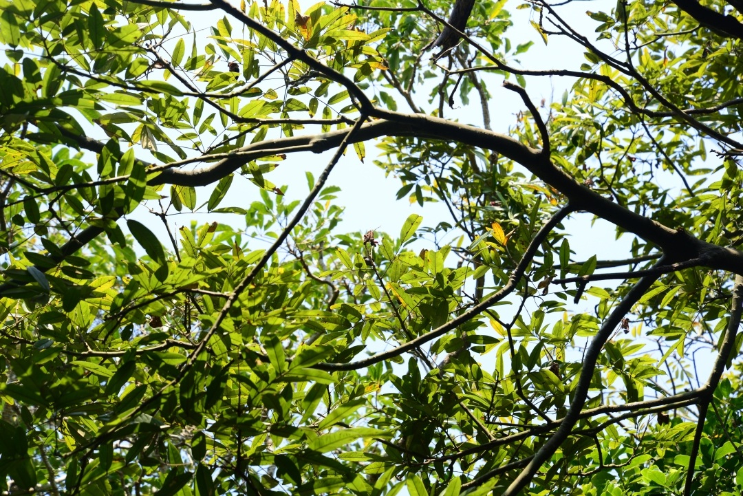据介绍,在深圳坝光湿地园发现的花榈木野生种群一共有10株,其中胸径超过10厘米的成年植株有3株,最大一株胸径达16.2厘米,高约6米。其余7株为幼年植株,胸径在0.4-8.2厘米不等。“相较于内陆种群,该种群呈现显著滨海适应特征,如植株叶片更为短狭,叶背绒毛密度更稀疏。我们在现场同时发现了自然萌发的少量幼苗,证实该物种在深圳具备完整生活史。”何春梅说。