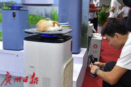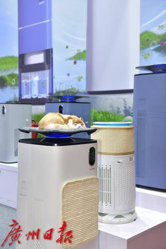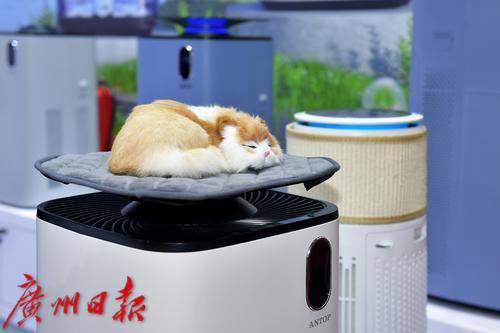 高效净化滤网,有效滤除空气中的细菌、颗粒物等。底部还新增了趣味玩具球,增添宠物与机器的互动。 “传统空气净化器主要是净化空气,该款产品主要解决养宠人的痛点,针对欧洲、东南亚、拉丁美洲、南美洲等市场,这两天有特别多的意向客户来现场咨询。”杨博嘉表示。