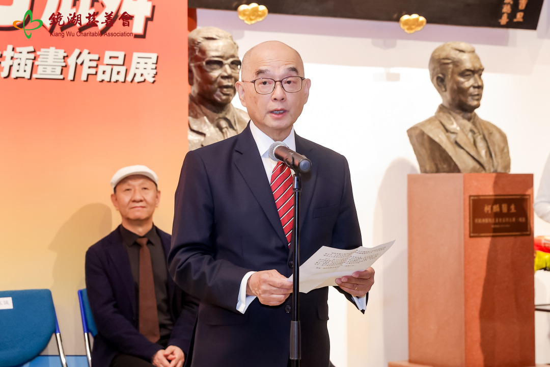 镜湖慈善会理事长刘永诚在致辞中概括介绍了柯麟医生传奇的一生,他表示,本次展览在4月15日澳门全民国家安全教育日之际举办,意义深远。他呼吁公众传承柯麟医生的崇高理想,以爱国情怀投身民族复兴事业,为国家安全贡献力量。此次展览以插画艺术为载体,生动呈现柯麟医生的革命与医学教育历程,为澳门市民提供了解历史、增强国家意识的文化平台,进一步促进粤港澳三地的艺术合作与情感联结。