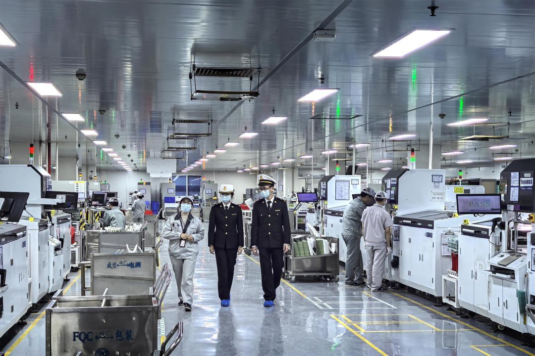 江门海关所属鹤山海关关员到印刷电路板企业进行调研。