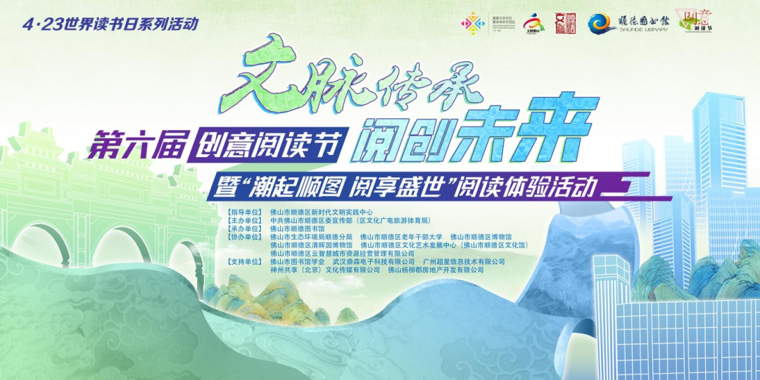 据了解,第六届创意阅读节暨“潮起顺图 阅享盛世”阅读体验活动是“4・23”世界读书日暨公共图书馆服务宣传周系列活动的重要组成部分。本届活动由佛山市顺德区文化广电旅游体育局主办,顺德图书馆承办,带着全新的主题“文脉传承,阅创未来”,将在4月18日-20日与大家见面。
