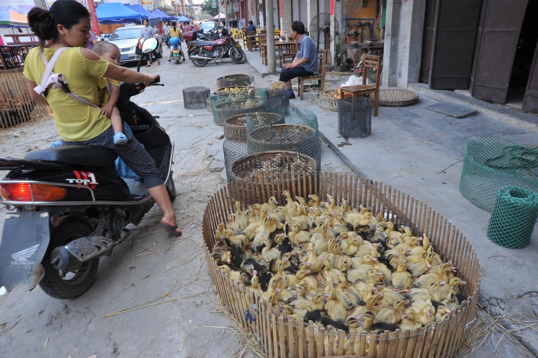 农场家养的猫猫狗狗,在摊位上或慵懒地趴着,或好奇地张望着周围的人群,一旁,三鸟(鸡、鸭、鹅)在笼子里扑腾着翅膀,发出欢快的叫声;鱼虾在水盆里活蹦乱跳,溅起晶莹的水花,鲜活的模样让人忍不住驻足挑选。