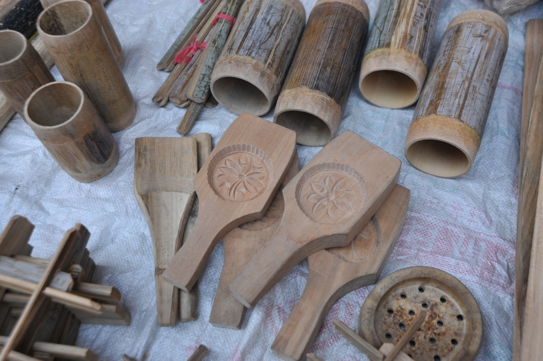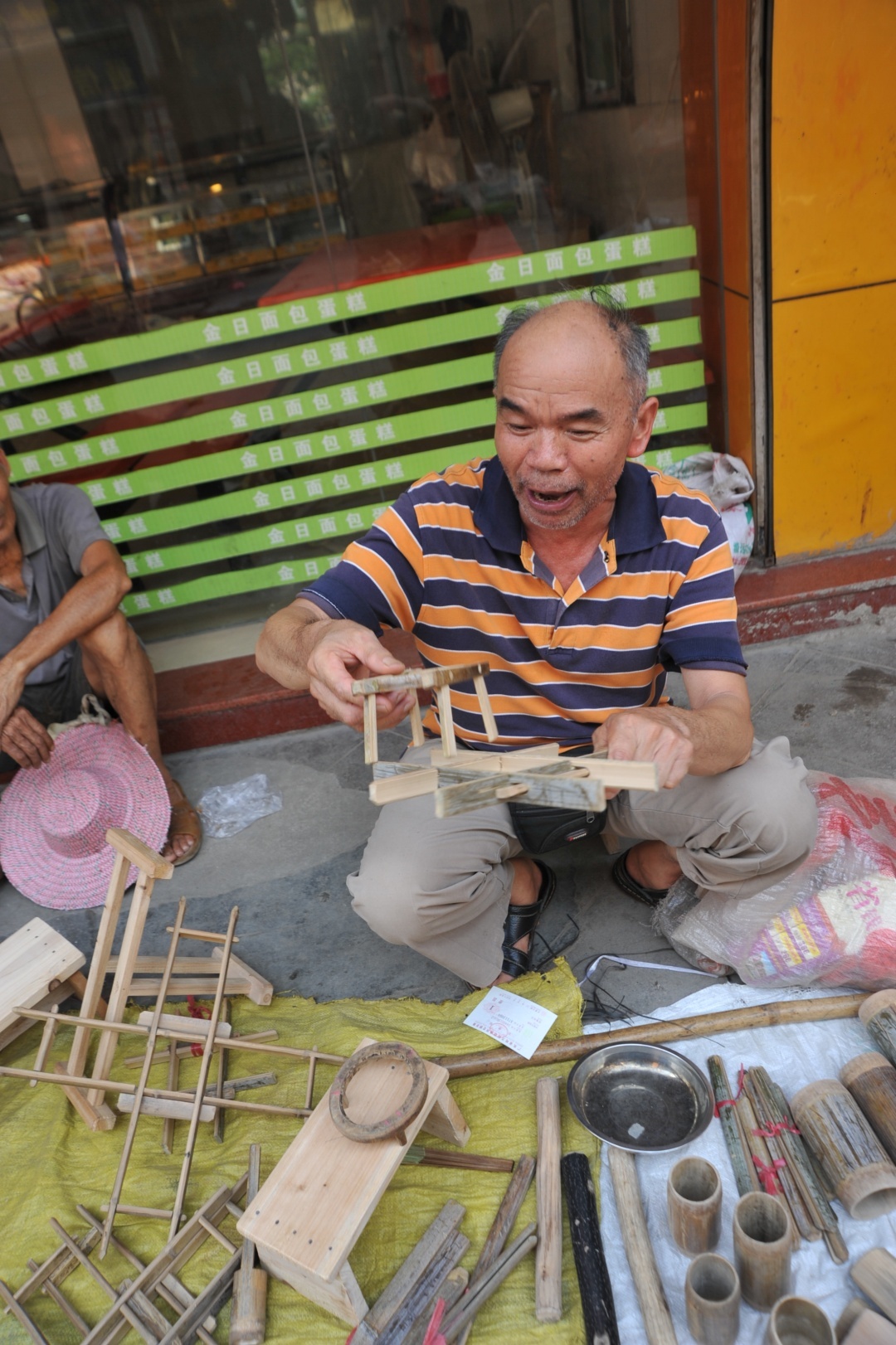 而传统的农耕用具区域,更是吸引了不少人的目光。各种镰刀、锄头、菜刀等铁器整齐摆放,虽然历经岁月打磨,却依然散发着质朴的气息。一位头发花白的老大爷带着自己编制的各种竹器就地摆卖,很多都是家庭主妇喜欢的神器,可以拿来蒸包子馒头,装水果食物,环保又价廉。老人告诉记者:“这些传统手工竹器都是自己祖传的手艺,很多街坊用了大半辈子。”