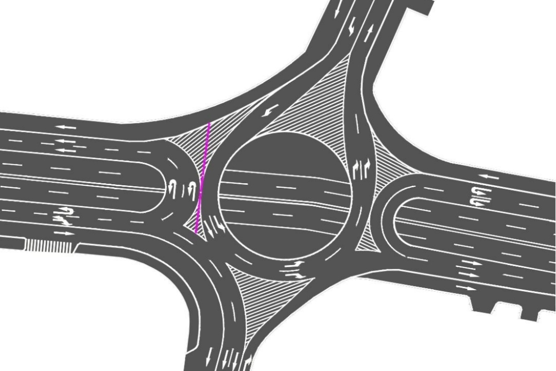 西场立交地面北往东硬隔离禁止左转示意图