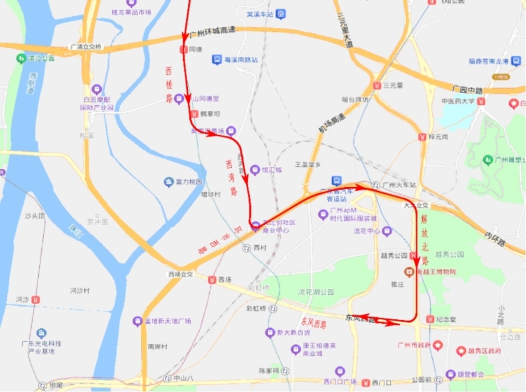3.远端金沙洲、西槎路方向车辆可绕行环市西路,经解放北路至东风西路。