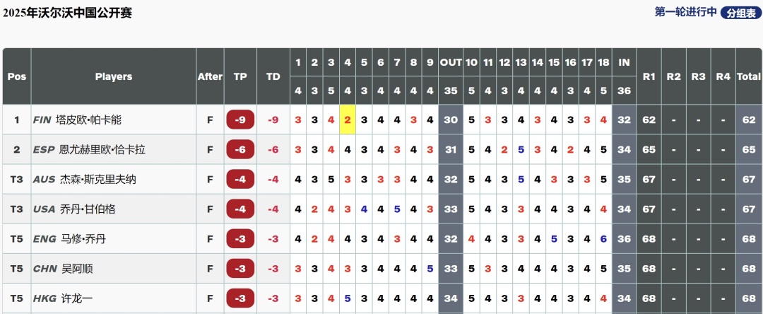 对于首轮比赛的个人发挥,吴阿顺表示,“我觉得首先推杆还是挺满意的,自己在挥杆上其实也挺满意,除了一两杆没有打出想象中的球路出来,其他的都还不错。那两杆主要还是偏向左边,所以可能回头要去练习场找找原因。”