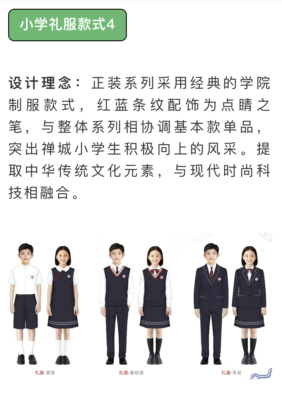 4月17日,记者从佛山市禅城区教育局获悉,为推进禅城区校服市场化改革工作,该局面向社会公开征集了校服款式设计方案,累计收到来自51家单位投稿,目前已通过邀请家长代表、专家及学校三方人员,从征集方案中按学段各评选出五个候选款式(各含夏装、春秋装、冬装运动服及礼服),评审维度涵盖美观性、舒适性、实用性、文化融合性及经济性五项指标。现邀请广大学生及家长对初评方案进行票选,最终将结合投票数据与专业意见,确定各学段新生校服制式。