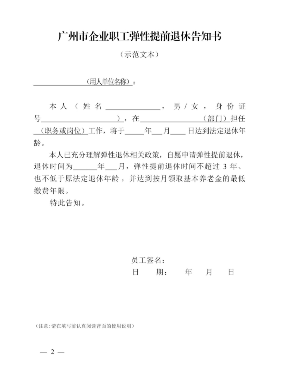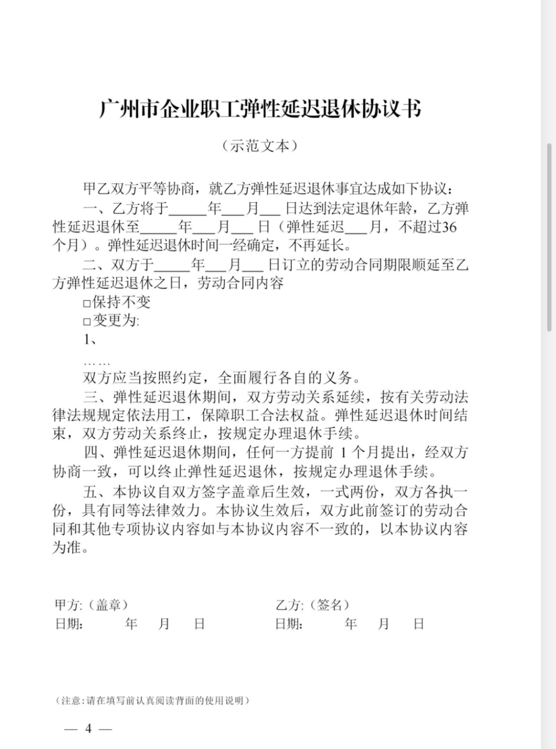 近日,广州市人力资源和社会保障局官网发布《关于印发企业职工弹性退休相关文书的通知》(简称《通知》),提供给用人单位和劳动者参考使用。